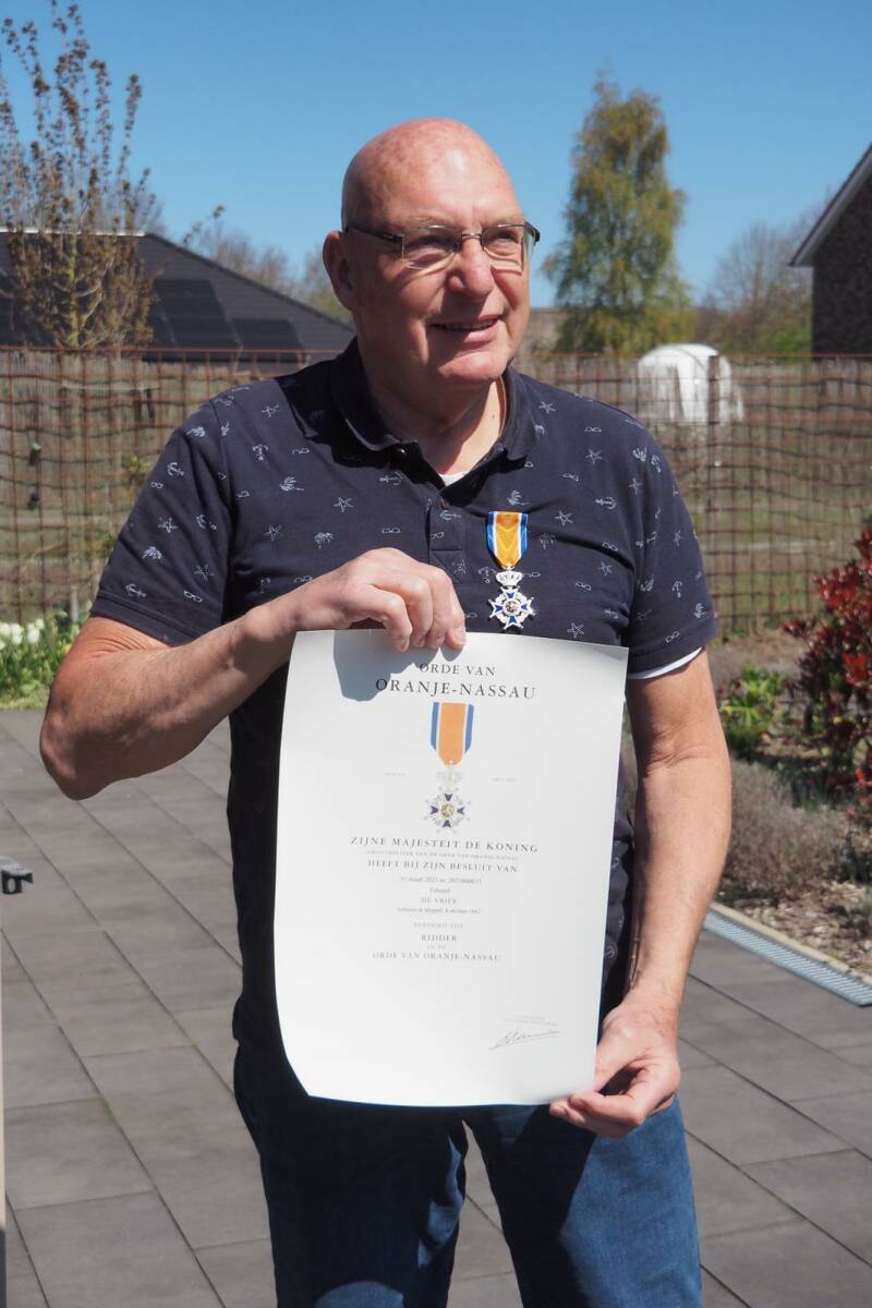 Vandaag is onze Red Giants Erelid, Edward de Vries geridderd tot ‘Ridder in de Orde van Oranje-Nassau’! De burgemeester kwam hem persoonlijk brengen i.v.m. Corona. Hoe speciaal dat zijn eigen vrouw hem mocht opspelden. Waarschijnlijk de eerste keer in zijn leven dat hij geen woorden had en ZEER vereerd was! Wat heeft hij het verdiend.